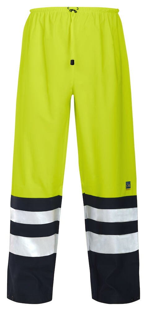 Vyötäröllä resori ja säädettävä nauhakiristys. Säädettävät lahkeensuut. Ommellut ja hitsatut saumat.