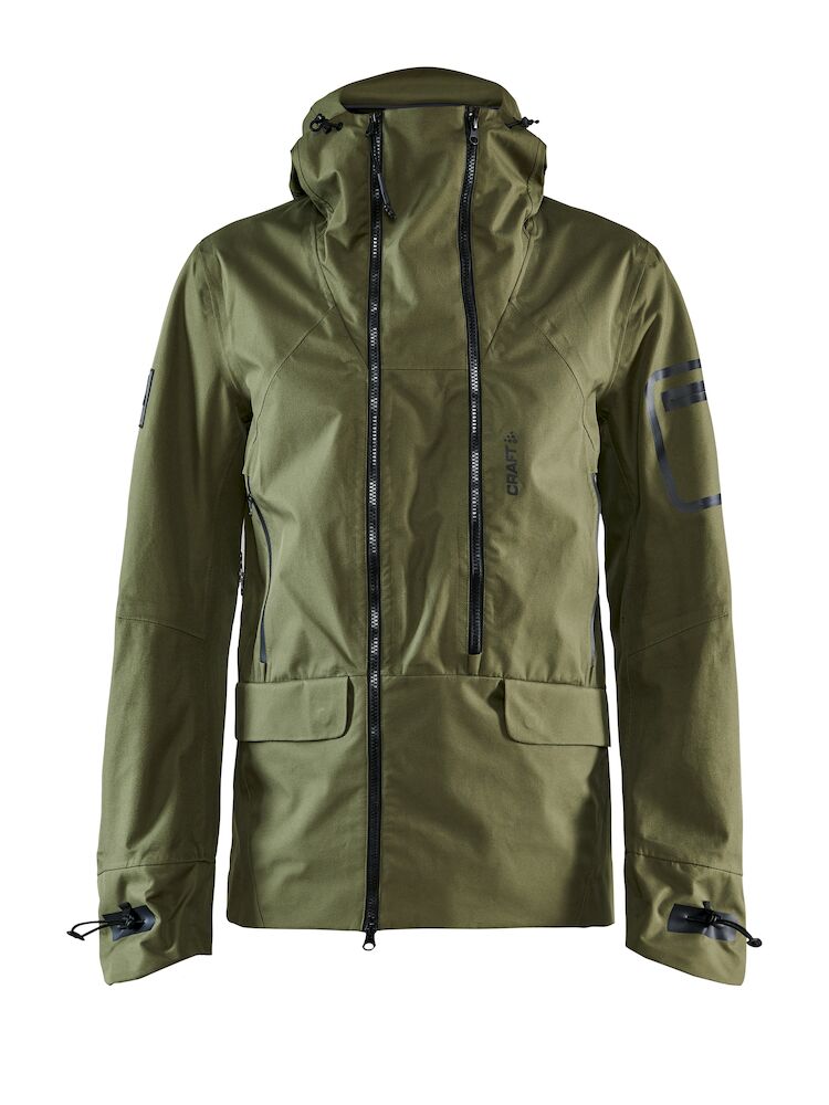 3-kerros kuoritakki teipatuilla saumoilla. Kainaloissa hengittävyyttä parantavat ominaisuudet, säädettävä huppu ja hihatasku.